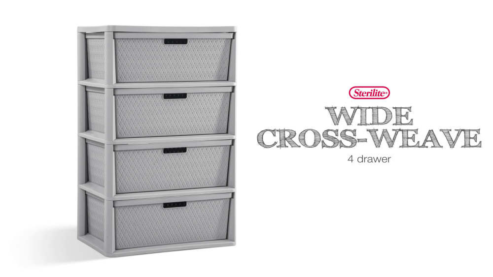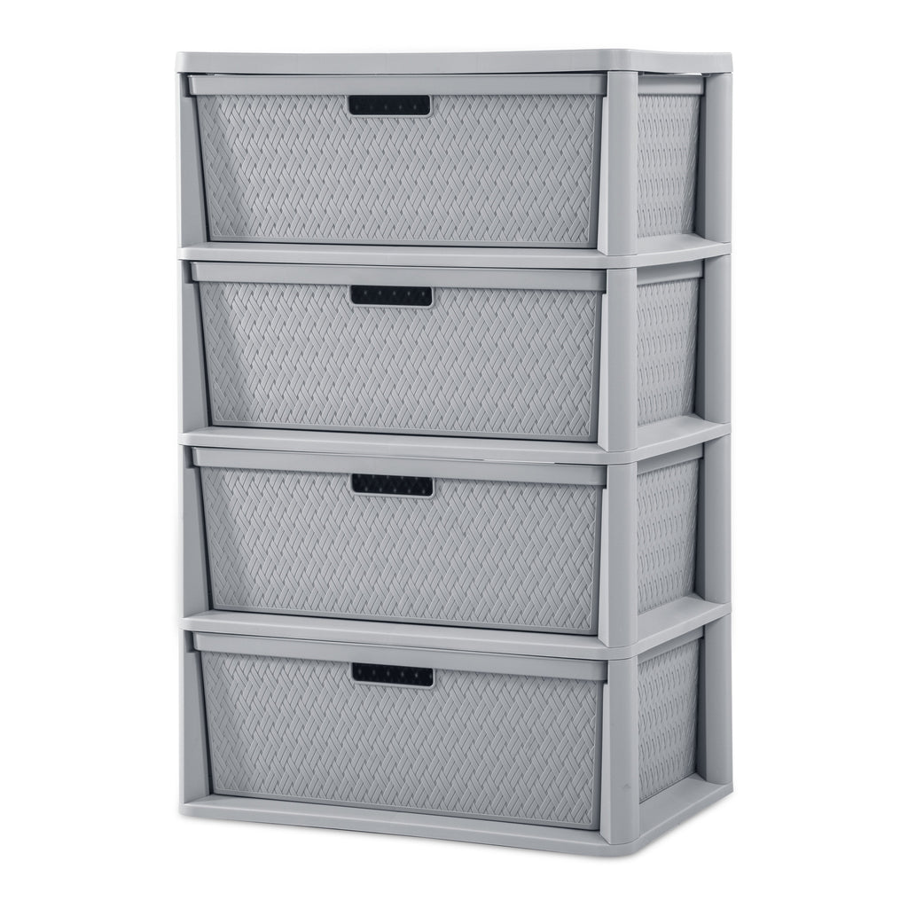 Sterilite Adult Plastic Wide 4 Drawer Cross-Weave Tower Cement:
