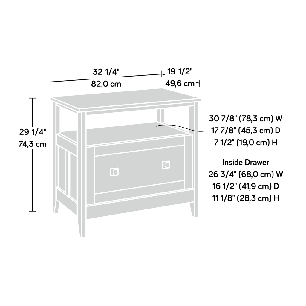 - Drawer with full extension slides holds letter, legal, or European size hanging files to help keep you organized