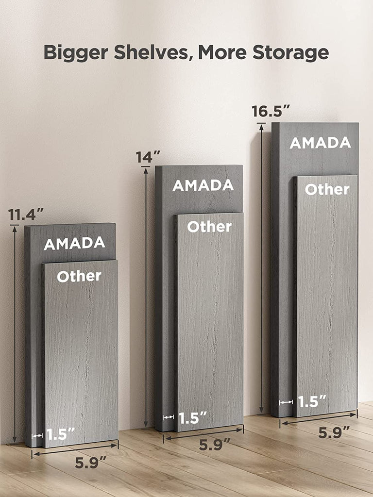 - Size Does Matter: With a size of 16.4 inches, these wall shelves are wider and longer than regular shelves on the market, providing more room and worry-free storage! Large: 16.4 × 5.9 × 0.7 inches; Medium: 14 × 5.9 × 0.7 inches; Small: 11.4 × 5.9 × 0.7 inches. Easy to install within a few minutes with all necessary hardware included.