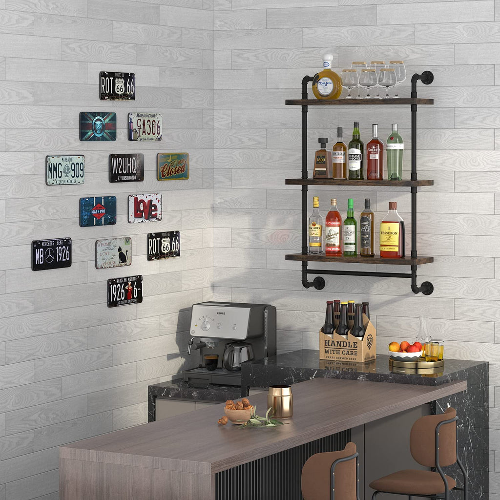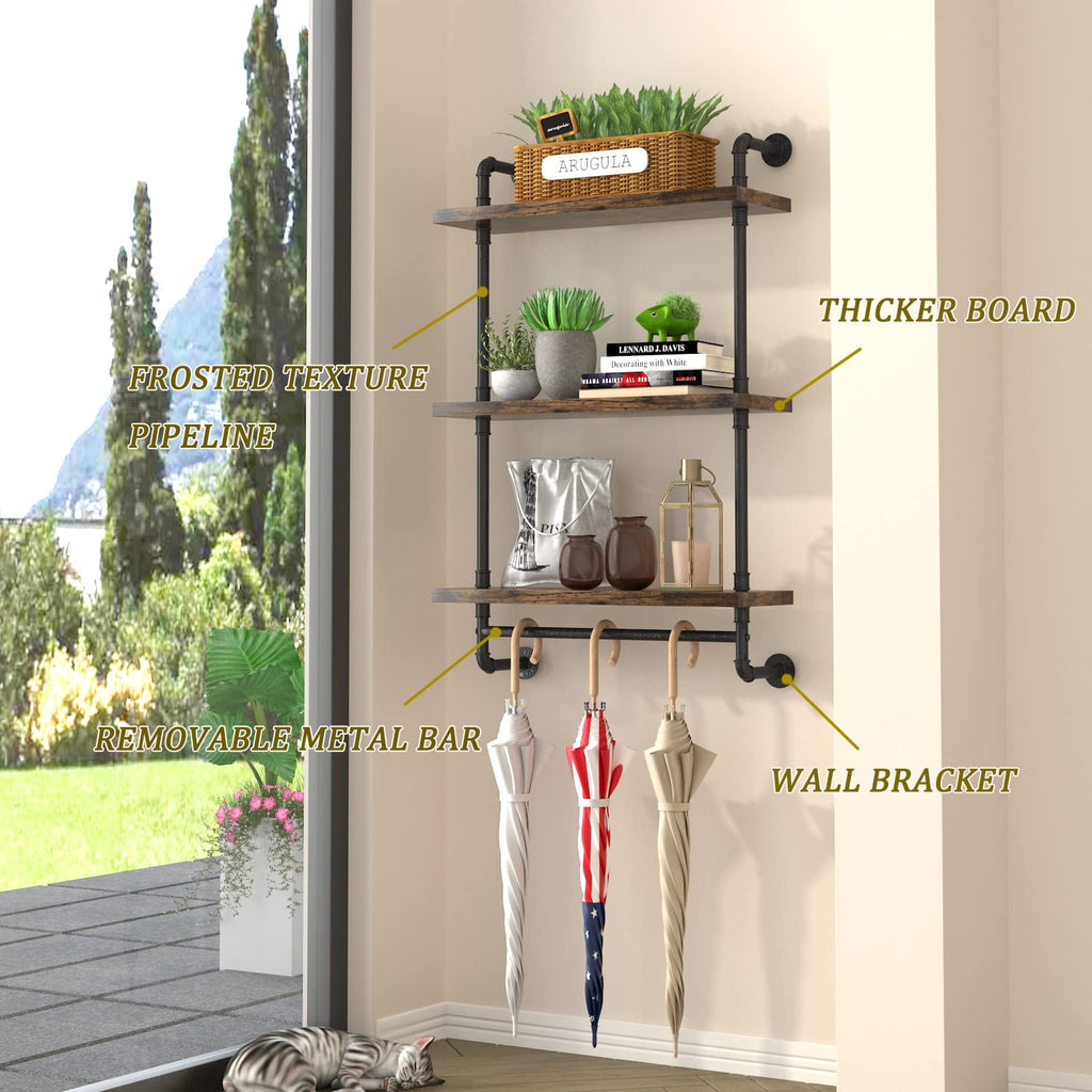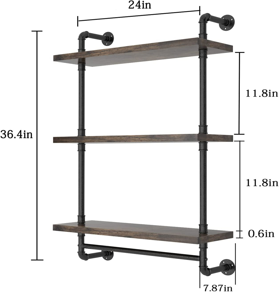 - 【Heavy Duty & Durable】 The rustic wall decor shelf with wood planks, which is 0.6-inch-thick plank, ensures that it has a good load-bearing capacity, It is very durable and you don't have to worry about it cracking easily. The metal round tube pipe hanging shelf bracket is fixed on the wall, which enhances the stability and firmness, is heavy duty home organizer with decorative and display features.