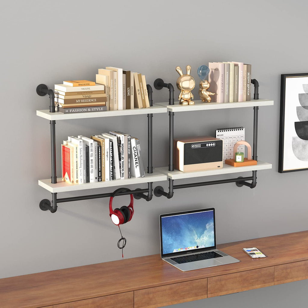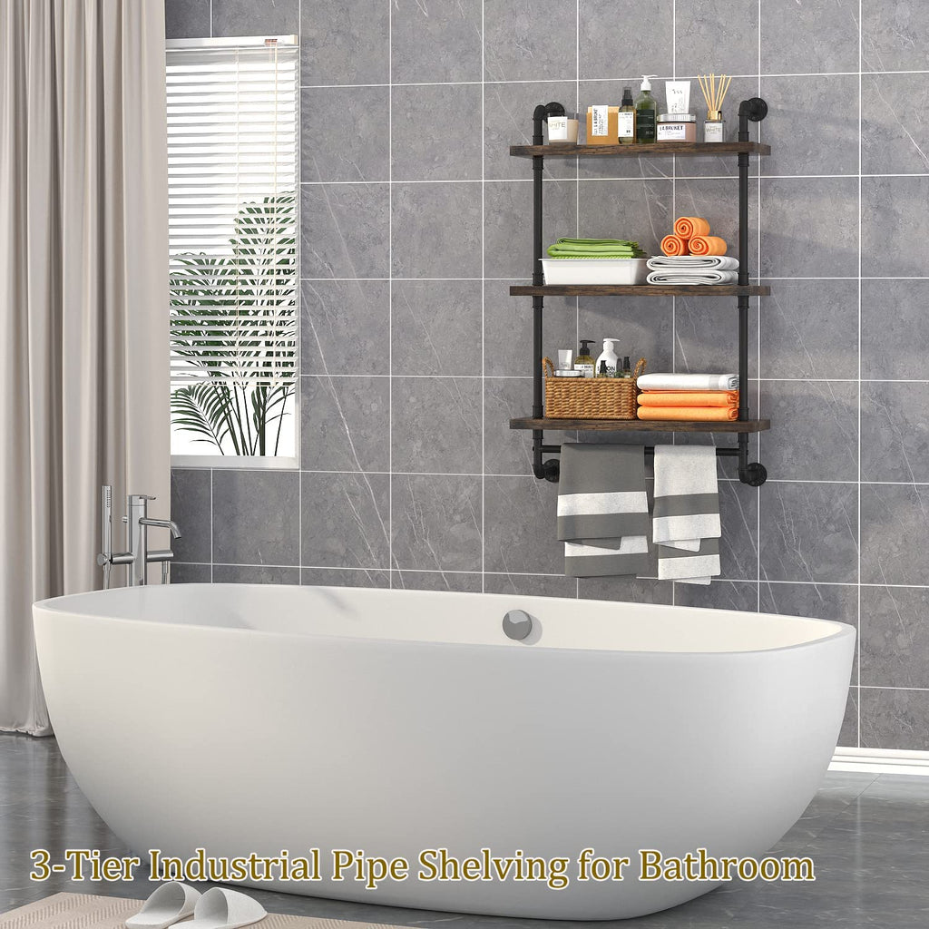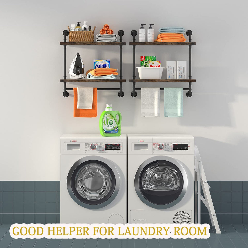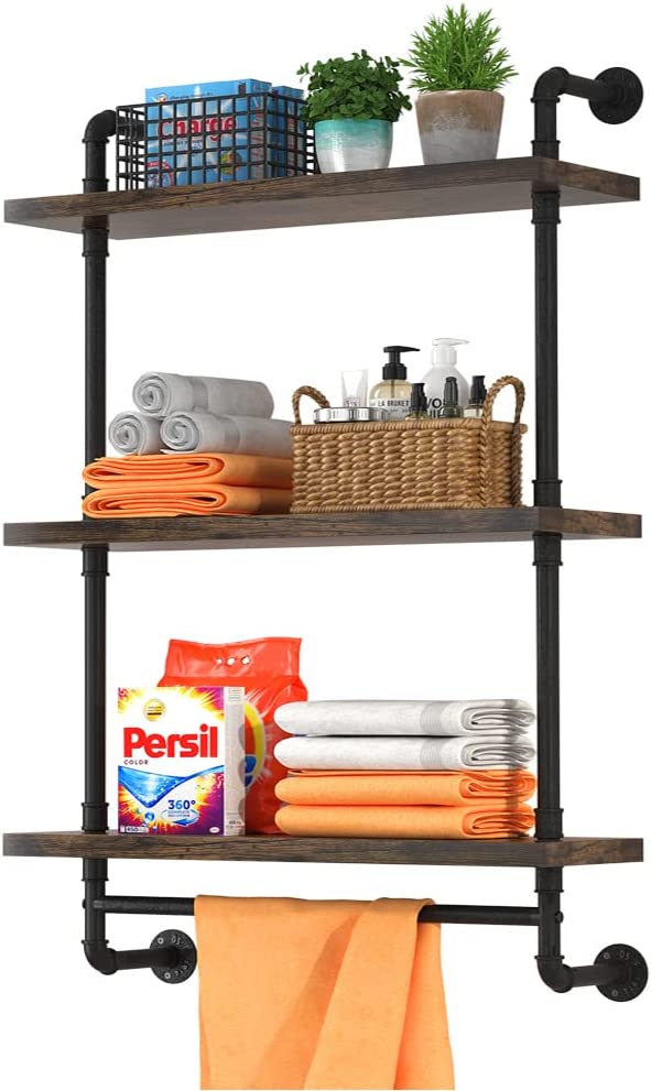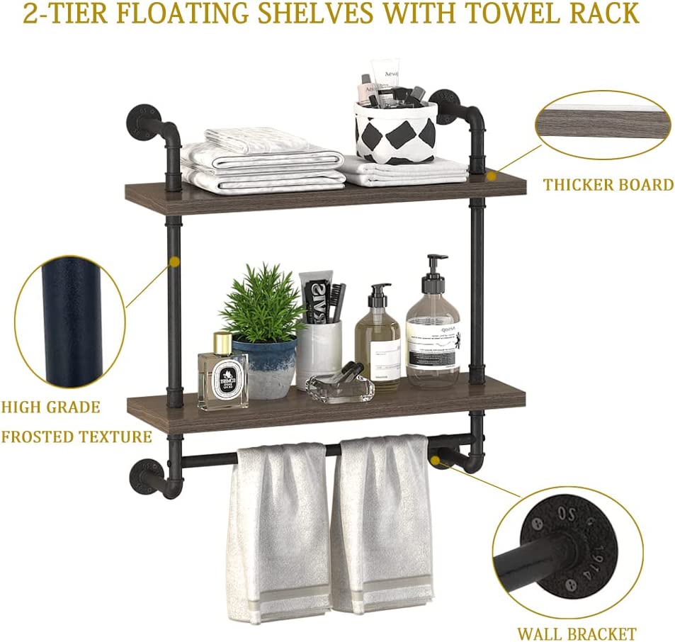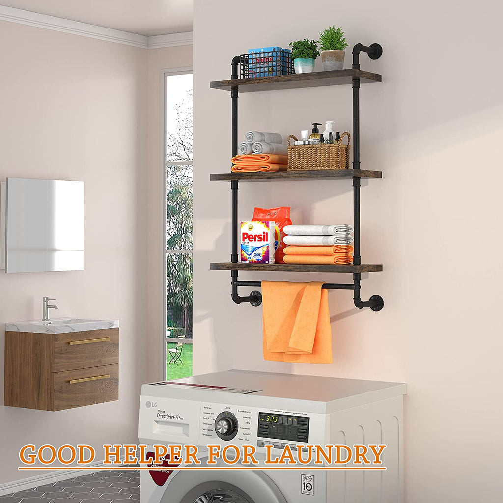 - 【Easy to Assemble & Clean】Helsin bathroom shelves come with step-by-step instructions and all fittings, including iron pipes, flanges, planks, level and screws. Just prepare the drill, and follow the installation steps, you will find installing the shelves is a breeze. To clean it, just wipe with a soft dry cloth to get rid of the dust and grime easily.