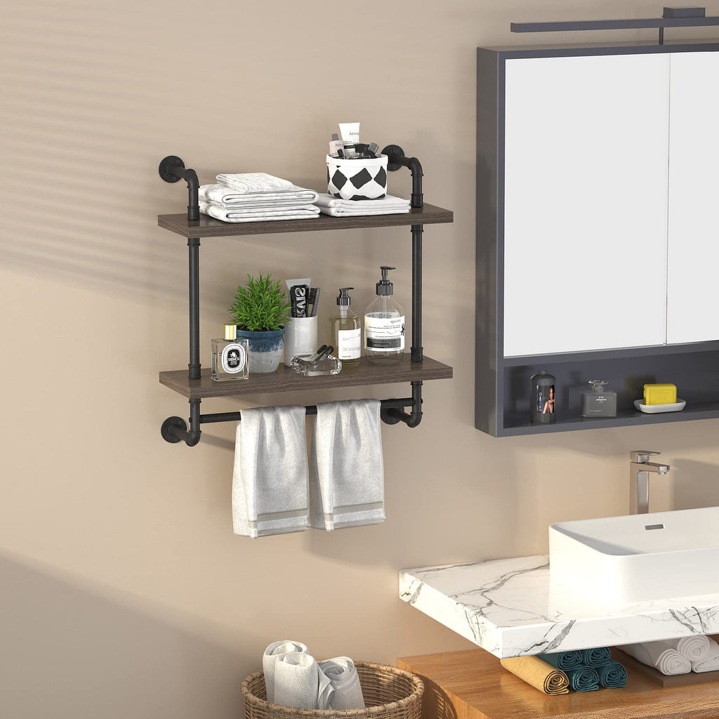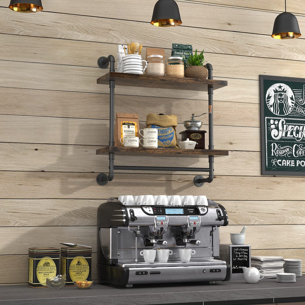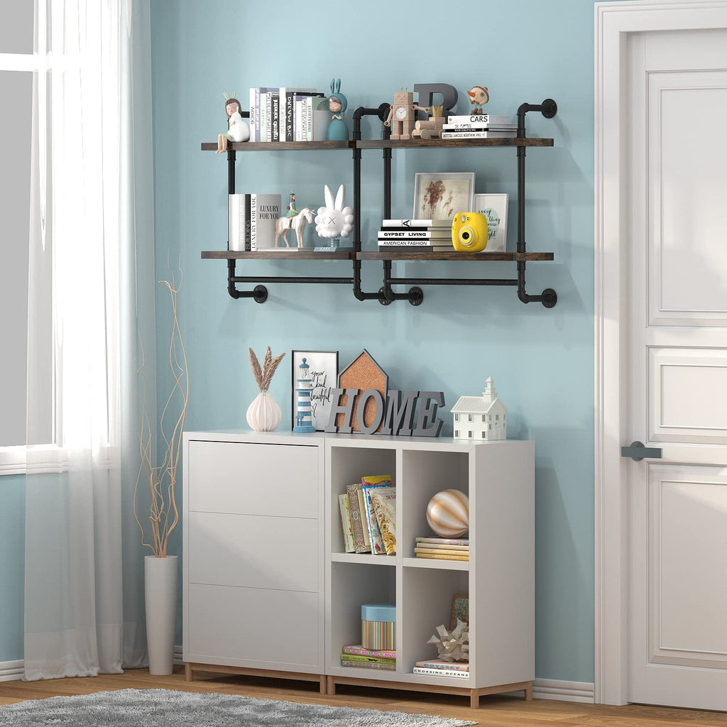 - 【Retro Style】Helsin 2 Tier industrial pipe shelving has a unique water pipe design, Iron pipes and wood composition in vintage style, chic and artistic, great for storage and decorations. It can also be used outdoors. Extensively anti-rust treatment.