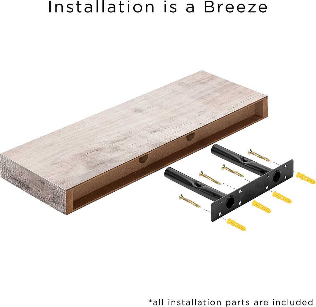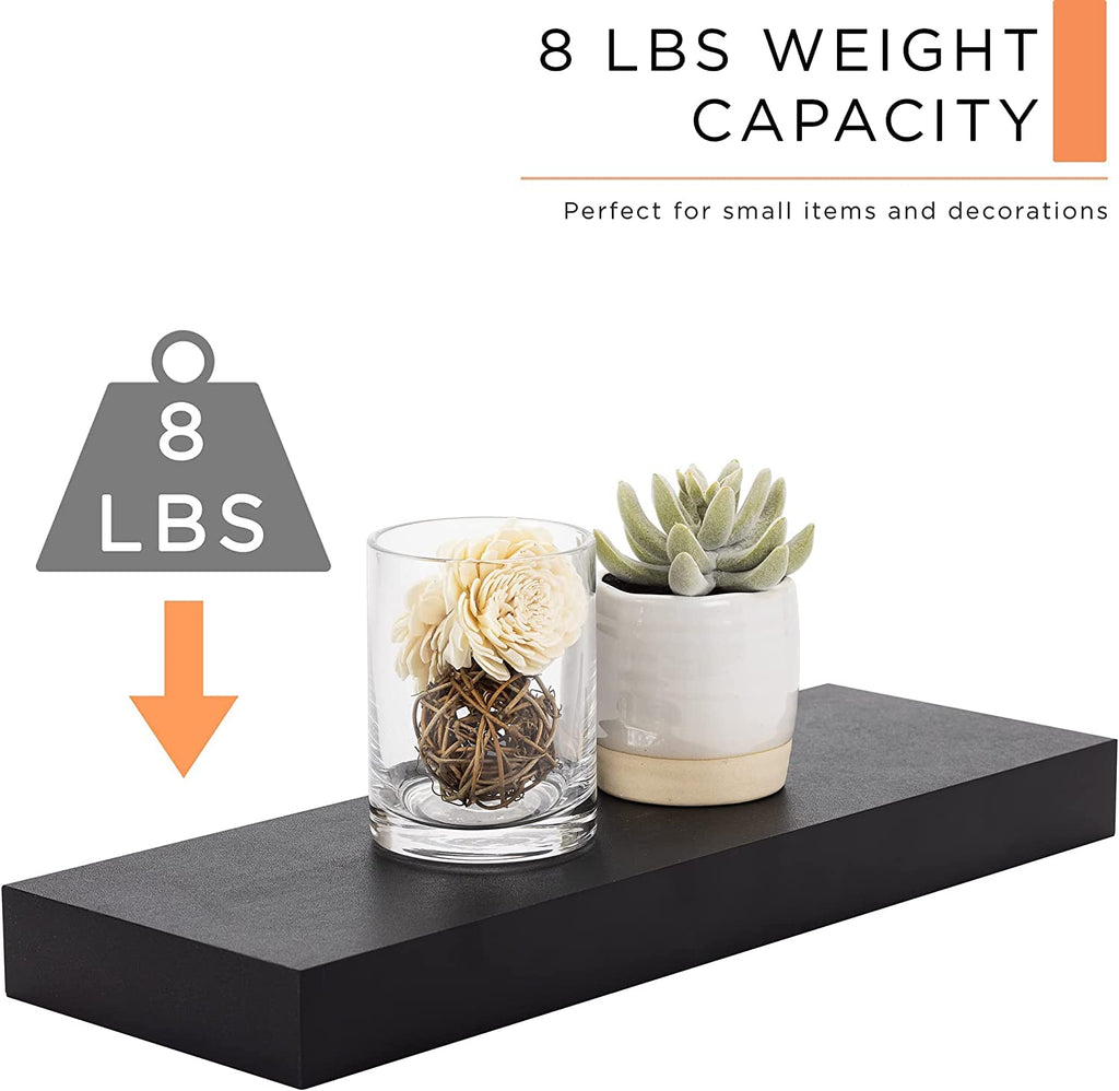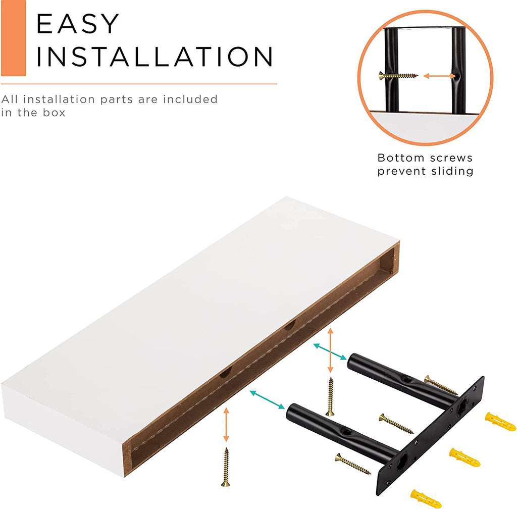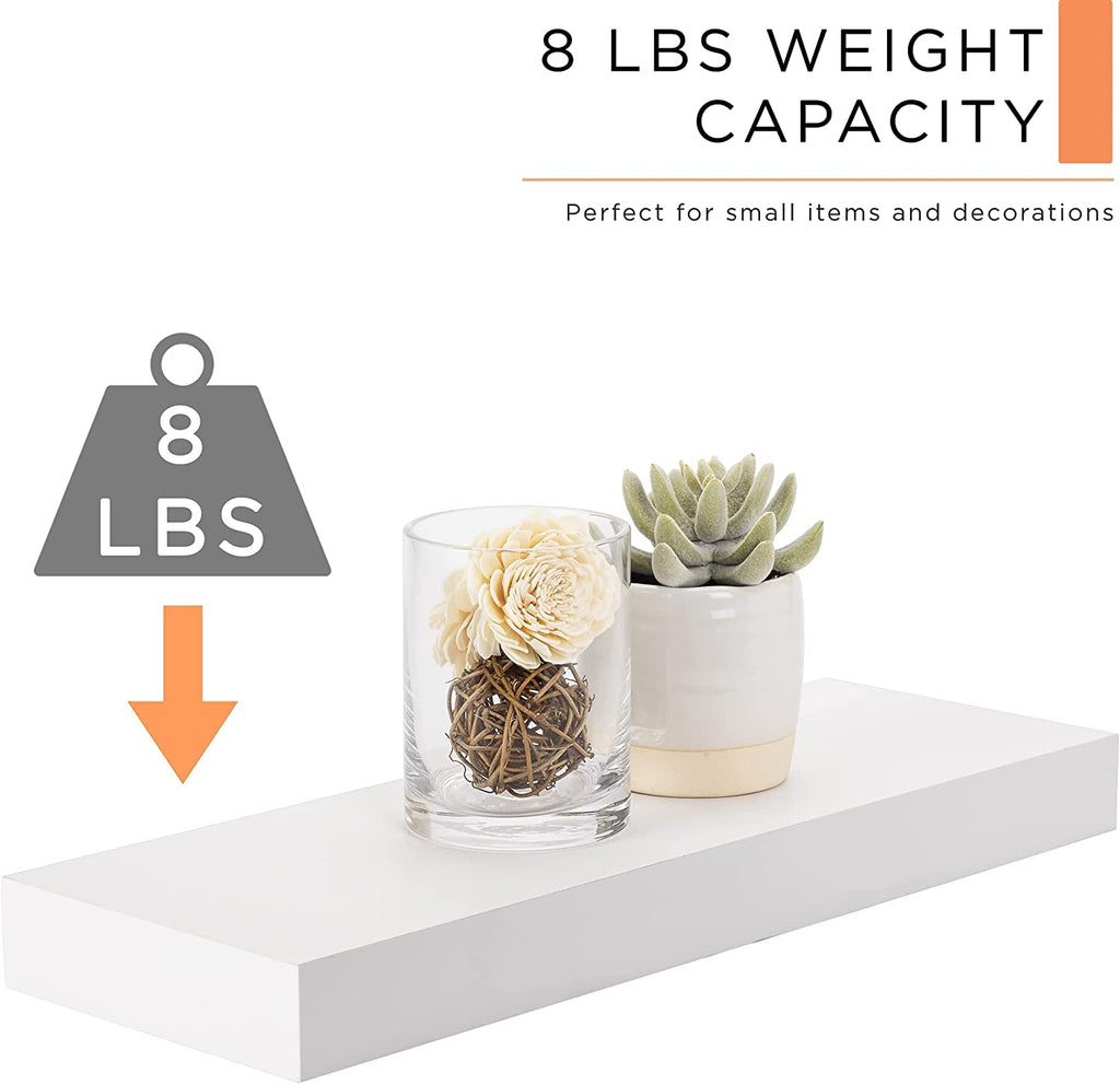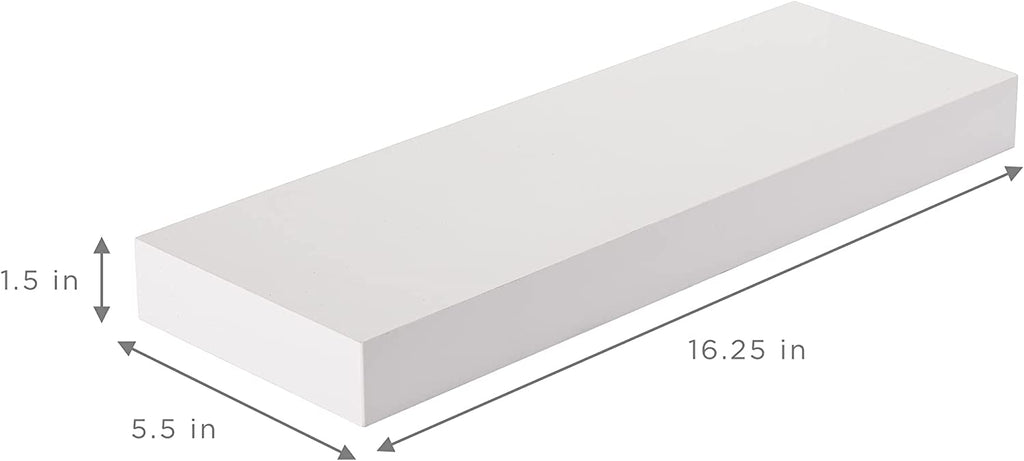 - EASY TO INSTALL — Made of beautiful MDF with PVC + Bracket — Sturdy enough to arrange and display your favorite small objects — Attaches firmly to the wall without visible support — Minor assembly required — Mounting Hardware INCLUDED — Supports up to 8 pounds per shelf — Measures approximately 16.25 inch L x 5.50 inch W — Each shelf 1.5 inch thick