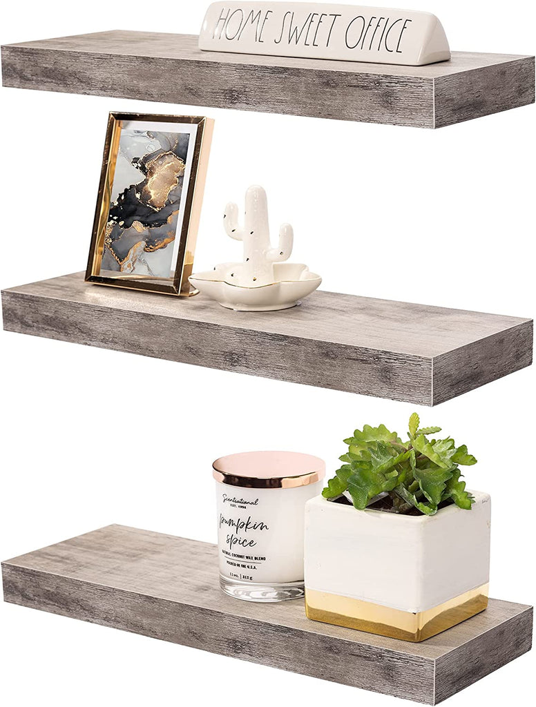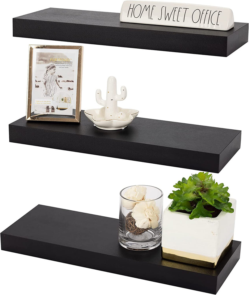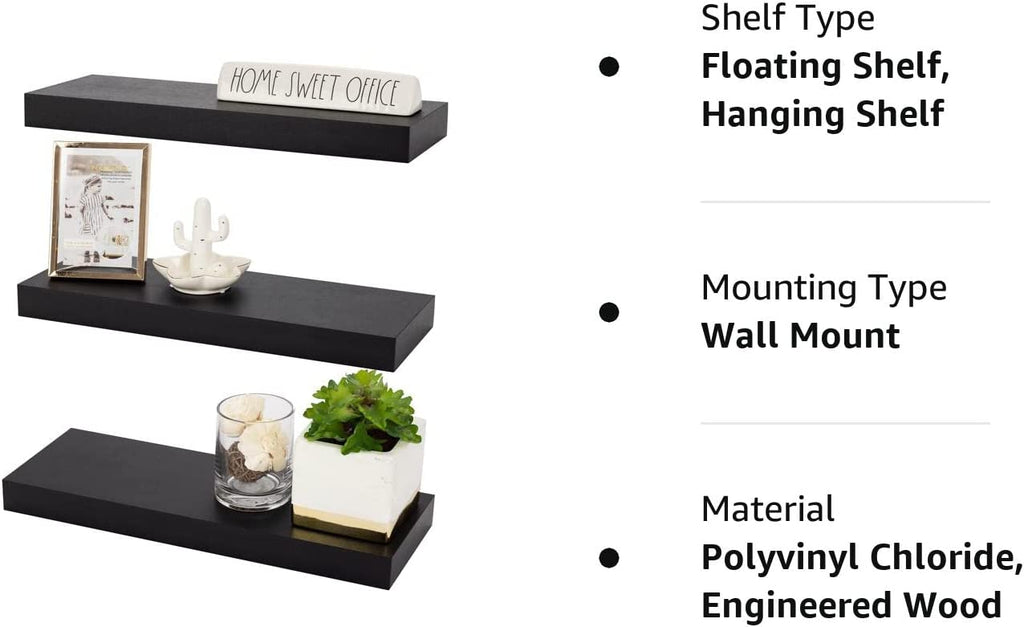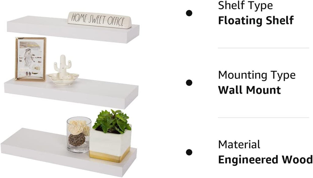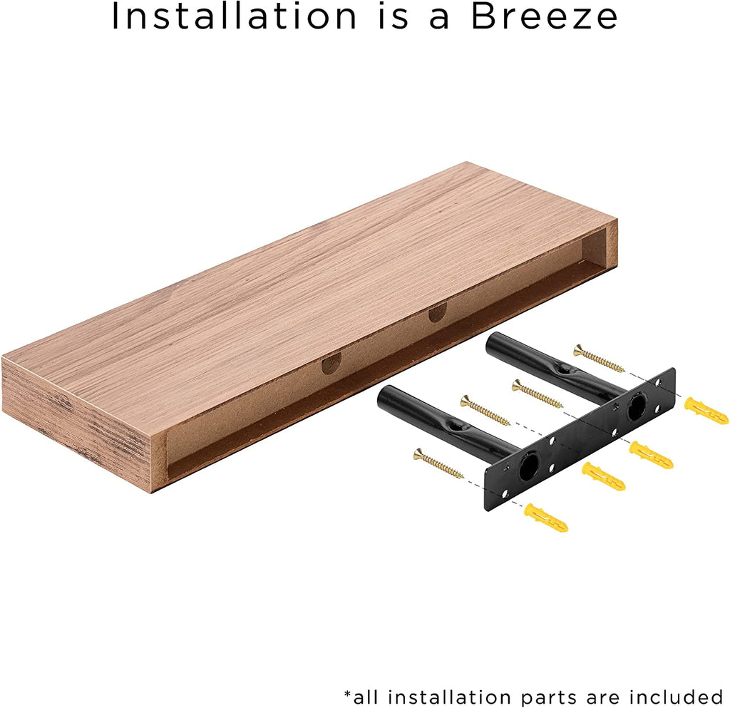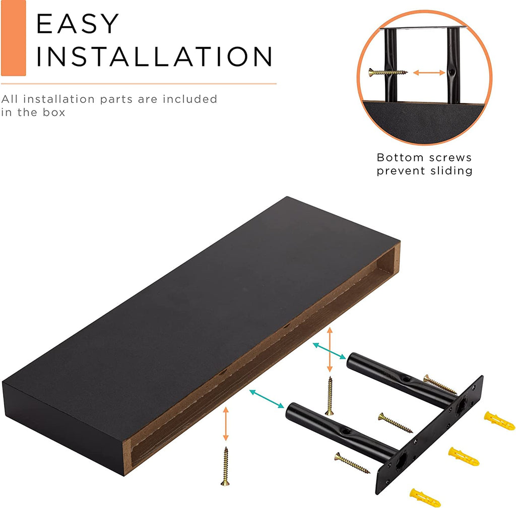 - EASY TO INSTALL — Made of beautiful MDF with PVC + Bracket — Sturdy enough to arrange and display your favorite small objects — Attaches firmly to the wall without visible support — Minor assembly required — Mounting Hardware INCLUDED — Supports up to 8 pounds per shelf — Measures approximately 16.25 inch L x 5.50 inch W — Each shelf 1.5 inch thick