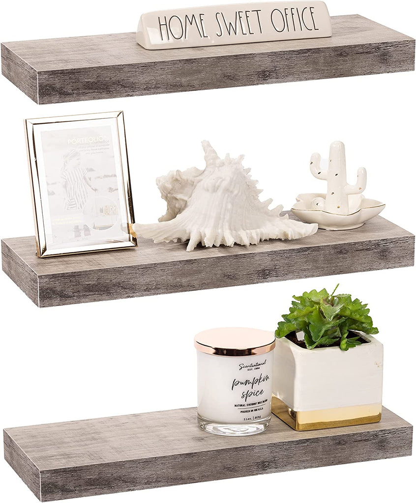 - DECORATE & DISPLAY — Adds character any modern, traditiol, rustic, industrial interior styles — Contrast shelves at staggering heights on the wall for a more energetic result or mount side-by-side for clean streamlined look — Enhance décor and fill in empty wall space above a desk, fireplace, entryway, vanity, between windows, and so much more