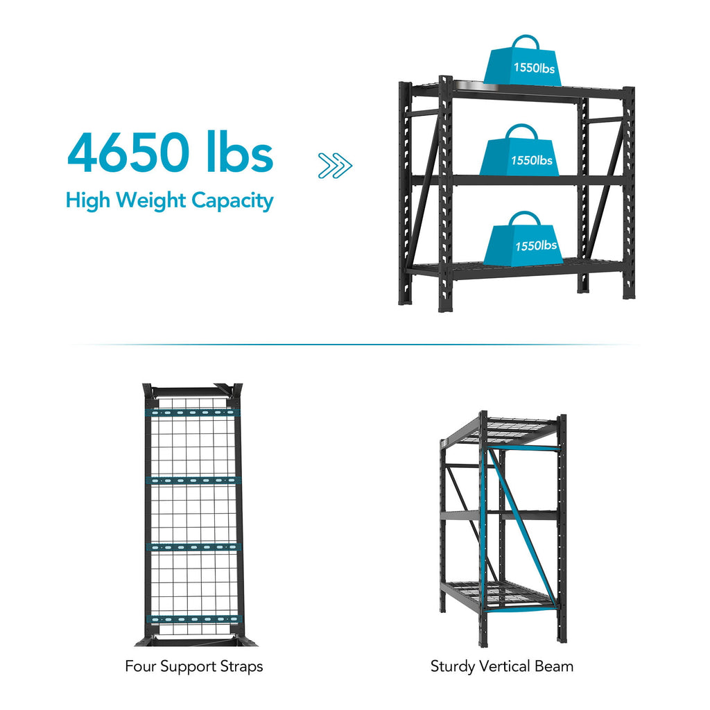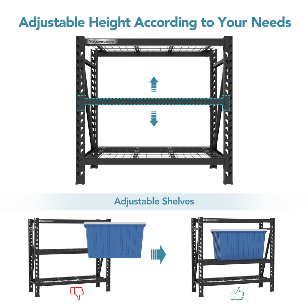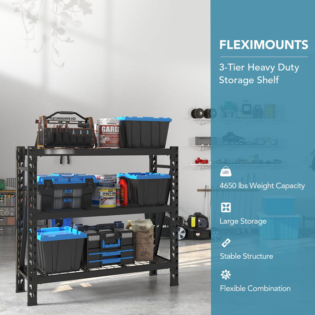 - Massive Capacity & Durable Material : The 3-tier storage shelf is made of heavy duty steel, which offers a high total weight capacity of 4650 lbs to satisfy all your storage needs.The Fleximounts uses steel wire deck which is odorless and sets it apart from particle boards which have a strong smell and are easily mildewed.