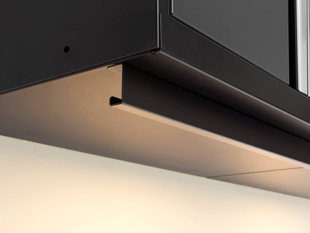 - Wall cabinets include a mountable light valance for discretely hiding LED lighting and unsightly cables