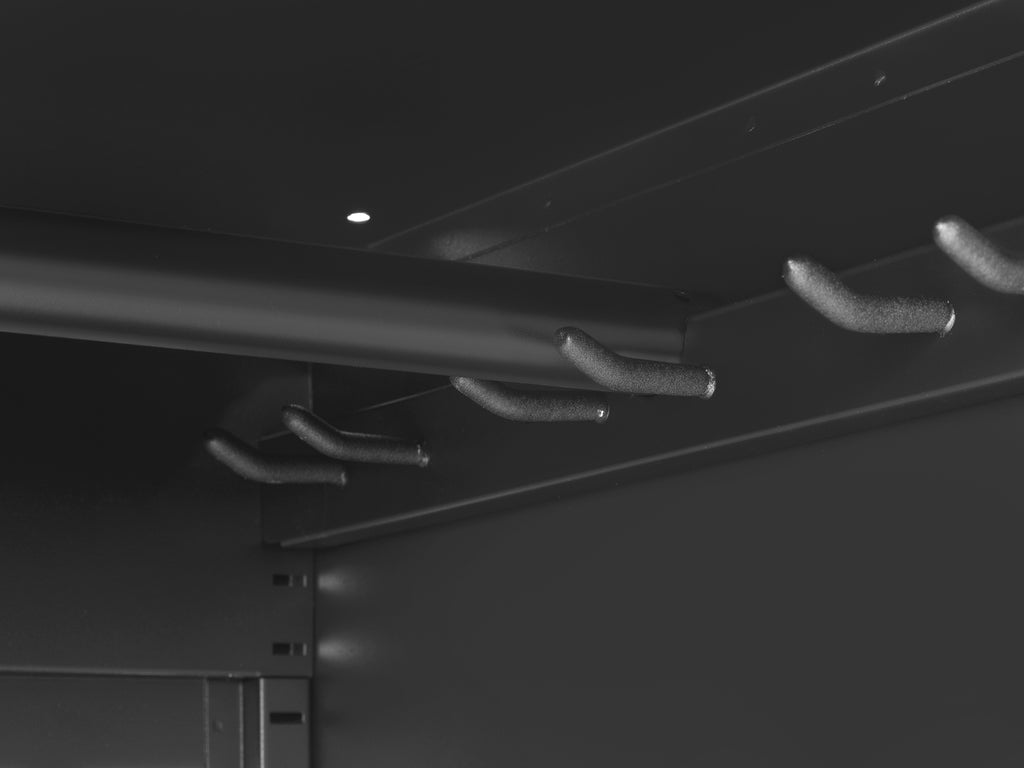 - Soft-close hinges on fully-lockable doors keeps your gear safe
