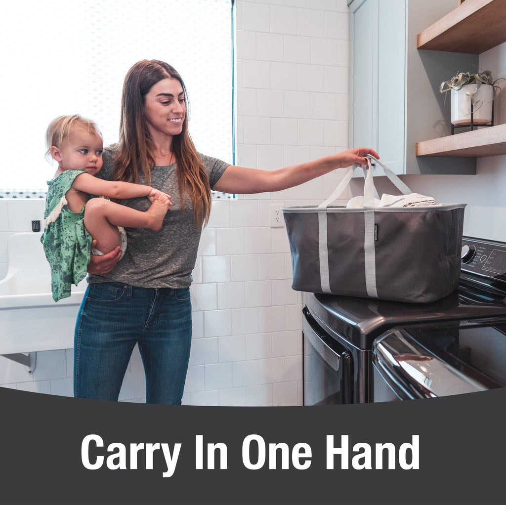 - CARRY IN ONE HAND - Easy to transport from your bedroom to the washing machine with 2 comfortable carrying handles - Enough room to throw in your detergent pods and fabric softener sheets