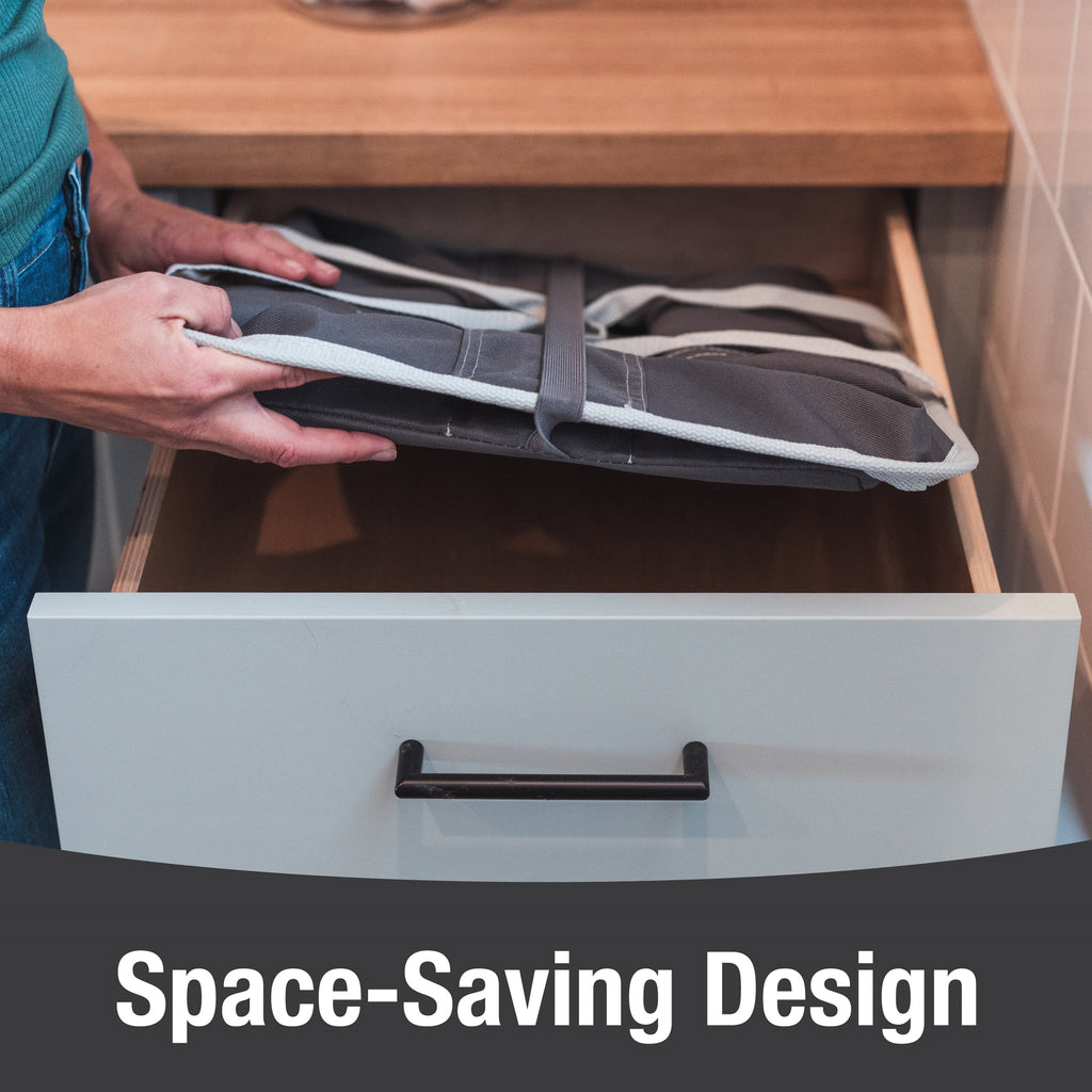- DIMENSIONS - When snapped open, the bags are 22"L x 15"W x 11.5"H and when folded, the height is only 2"; maximum carry capacity is 55 pounds; to clean, wipe down with a wet cloth and let air dry