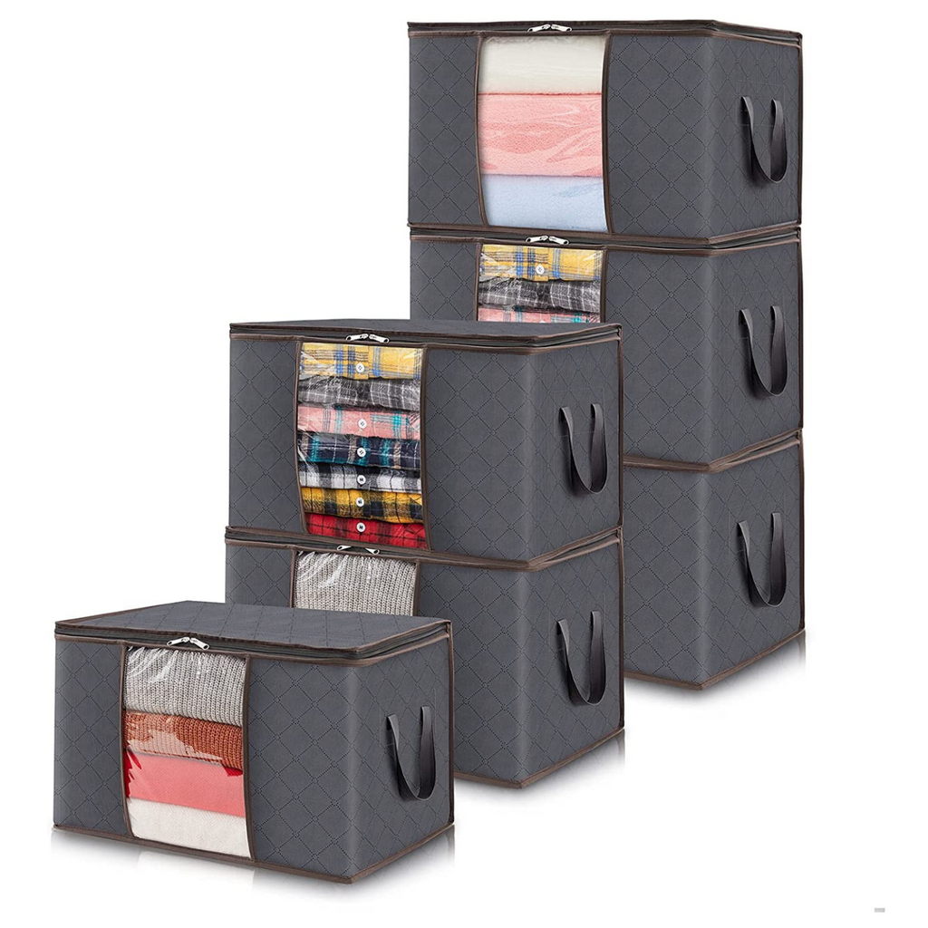 - Lifewit 6-Pack Clothes Storage Bag, Storage Bins for Clothes, Blankets, Comforters, Foldable Clothing Storage with Reinforced Handle, Sturdy Zipper, Closet Organizer With Clear Window, 60L, Grey