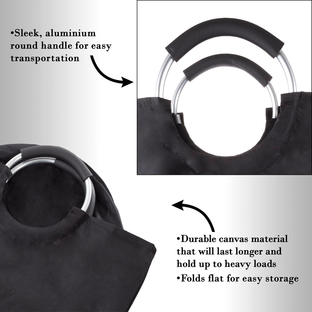 Laundry Hamper, Collapsible Canvas with Round Grip Handles by Lavish Home