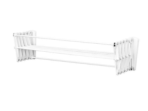 This retractable wall-mounted drying rack gives you maximum capacity even where space is minimal. Unfolded, its seven rods provide room for line-drying loads of delicate laundry, heavy sweaters and wet towels. When not in use, it folds flat to just 5.25 inches. Installation is simple; with two sets of mounting brackets, you can move this accordion drying rack from laundry room to bath with ease.