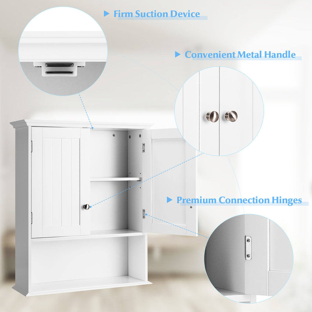 - Premium Material & Sturdy Construction: Made of high-quality MDF, this hanging cabinet features good durability and sturdiness with a long service time. Equipped with 2 doors, the cabinet can protect your daily items and prevent them from falling outside. The open compartment also has a good load bearing for storage.