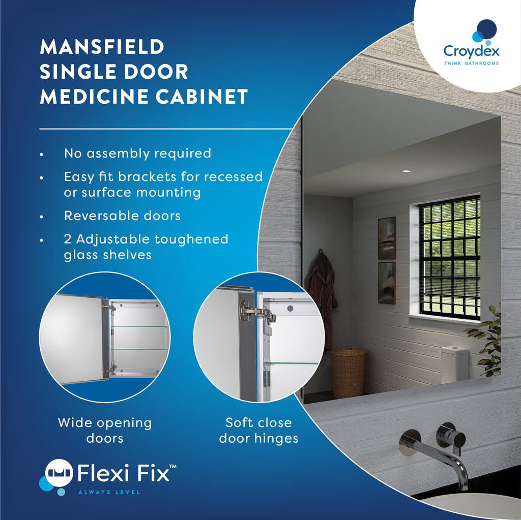 Mirrored bathroom cabinets help control clutter and add a rich focal point to your bathroom. Their reflective surfaces also create an illusion of larger and brighter spaces, providing tranquility and calm. This quality, single door aluminum cabinet can be recess or surface mounted. It features durable, high-grade materials and two adjustable toughened-glass shelves. Our quality cabinets offer styles to suit any bathroom décor at highly competitive prices. Let us help you create the bathroom you deserve. A space to relax, destress and effervesce. Me time is precious. Quick & Easy Install Our aluminum cabinets can be wall mounted or recessed. Either option uses a unique method to make installation quick and easy, saving you time and money: Recessed Mounting Recessed cabinets save space and give that ‘wow’ factor to your bathroom. But they can be tricky, time consuming and expensive to install. Our unique recessed bracket means you don’t have to construct a timber frame within the wall cavity. This will save significant labor and material costs*. If you prefer, our cabinets can still be recessed in the traditional way, giving you the freedom to choose. *You will still need to safely re-route plumbing and electrical wiring if necessary. Wall Mounting If you prefer to mount your new cabinet on the wall, we have a great option for that too! Our unique wall mounting brackets make installing and levelling a cabinet child’s play. Simply screw the Flexi Fix bracket to the wall and adjust using the built-in spirit level. When satisfied, just hang the mounting on the back of the cabinet over the bracket and lock in place. No more drilling and filling more holes than you need. Simple, quick, and always level!