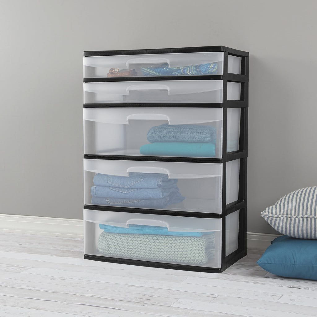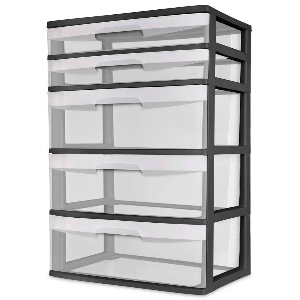 Sterilite Adult Plastic 5 Drawer Wide Tower Black: