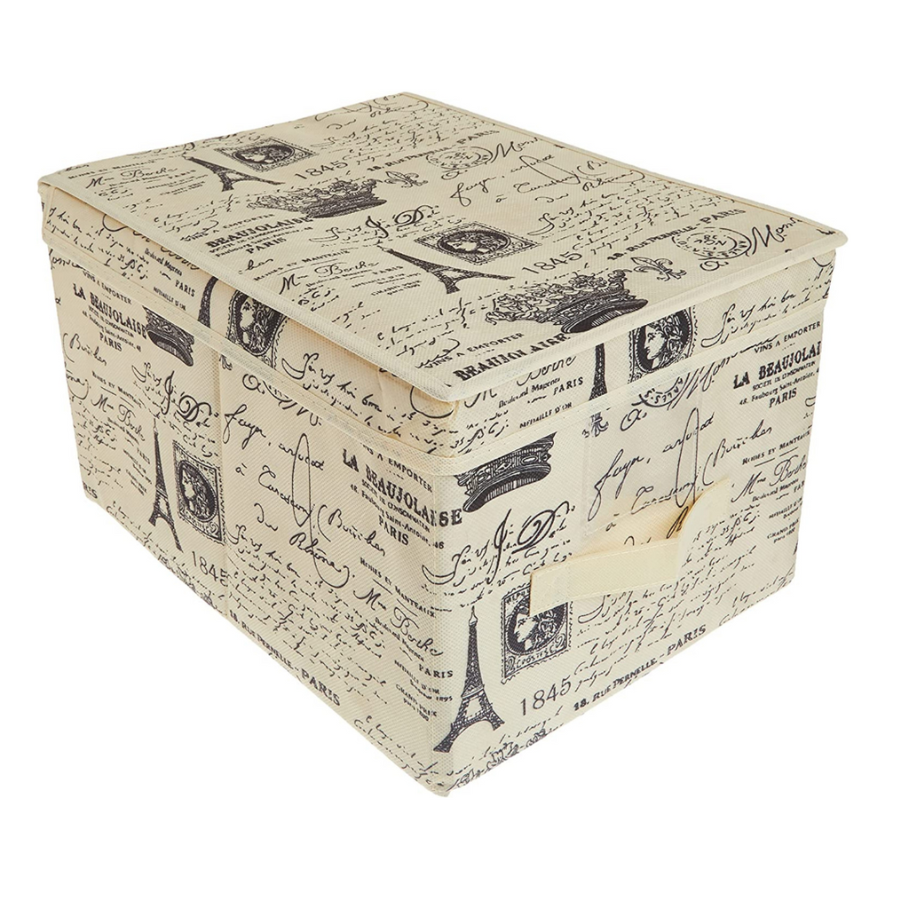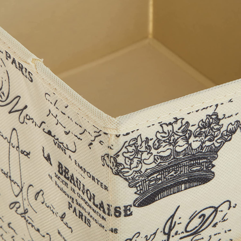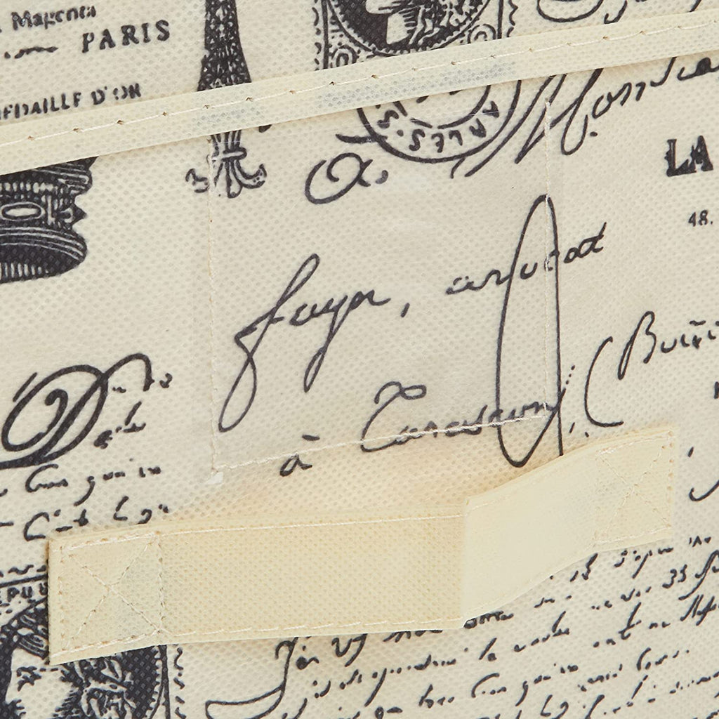 These bins have a Paris, French patterned design that brings vintage style to any space! The colors consist of an off white for the background color with black as the print for the Paris inspired graphics.