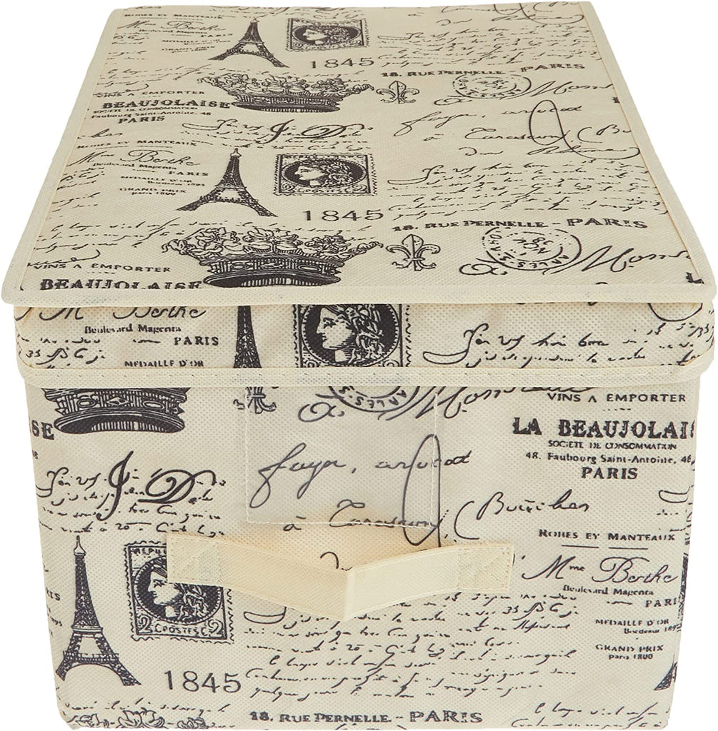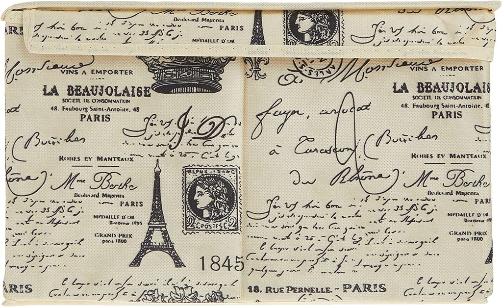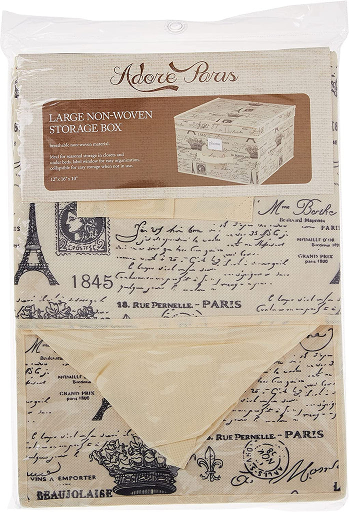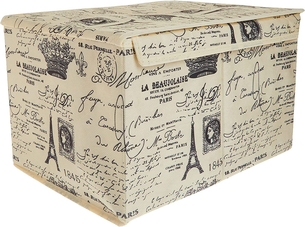 These bins have a Paris, French patterned design that brings vintage style to any space! The colors consist of an off white for the background color with black as the print for the Paris inspired graphics.