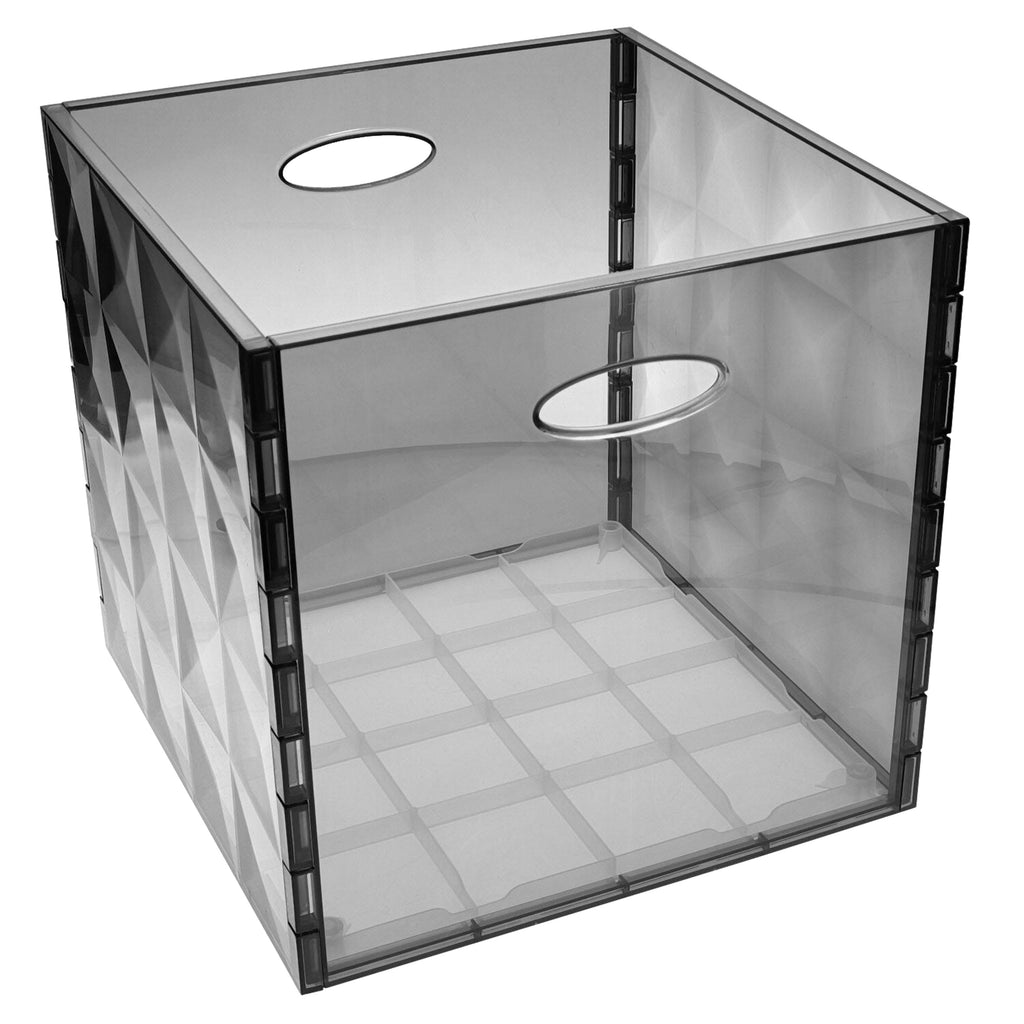 Storage has never been simpler than it can be with the Home+Solutions Translucent Plastic and Bamboo Grey Large Crystal Bin. This multipurpose storage container comes flat and must be assembled to serve as a 12.25” deep bin. Durably constructed with plastic sides and base, and a bamboo top, the Home+Solutions Translucent Grey Large Crystal Bin is built to last. The versatile design of the bin allows you to stack multiple by removing the bamboo top. Grey plastic sides are translucent to show contents. Ideal for storing office materials, electronics, personal items, toys, and so much more! Skid-resistant feet are incorporated on the bottom of the bin to prevent slipping. The modern crystal pattern, subtle translucent grey color and bamboo top make the crystal bin a welcome addition as a permanent storage solution in the home. Each bin fully assembled measures 12”x12”x12.25”.