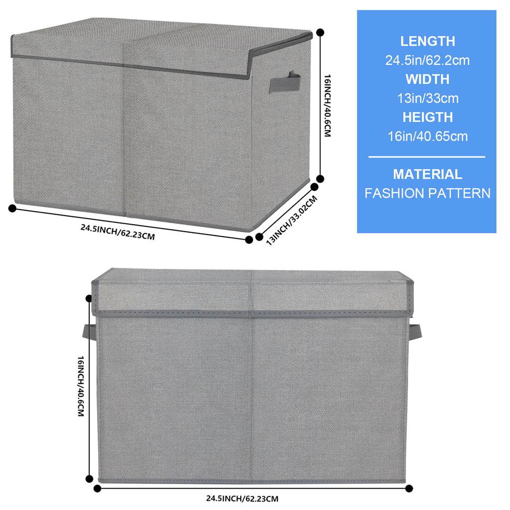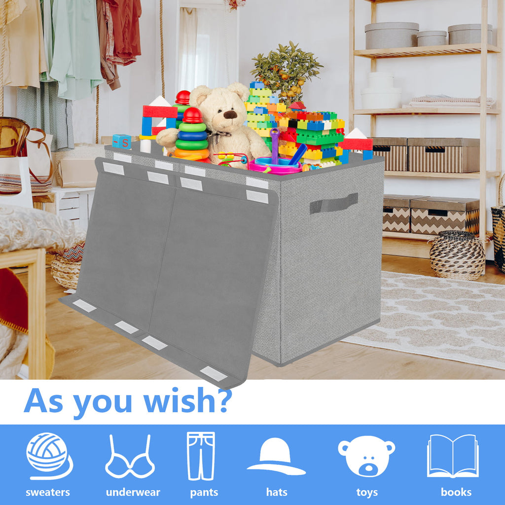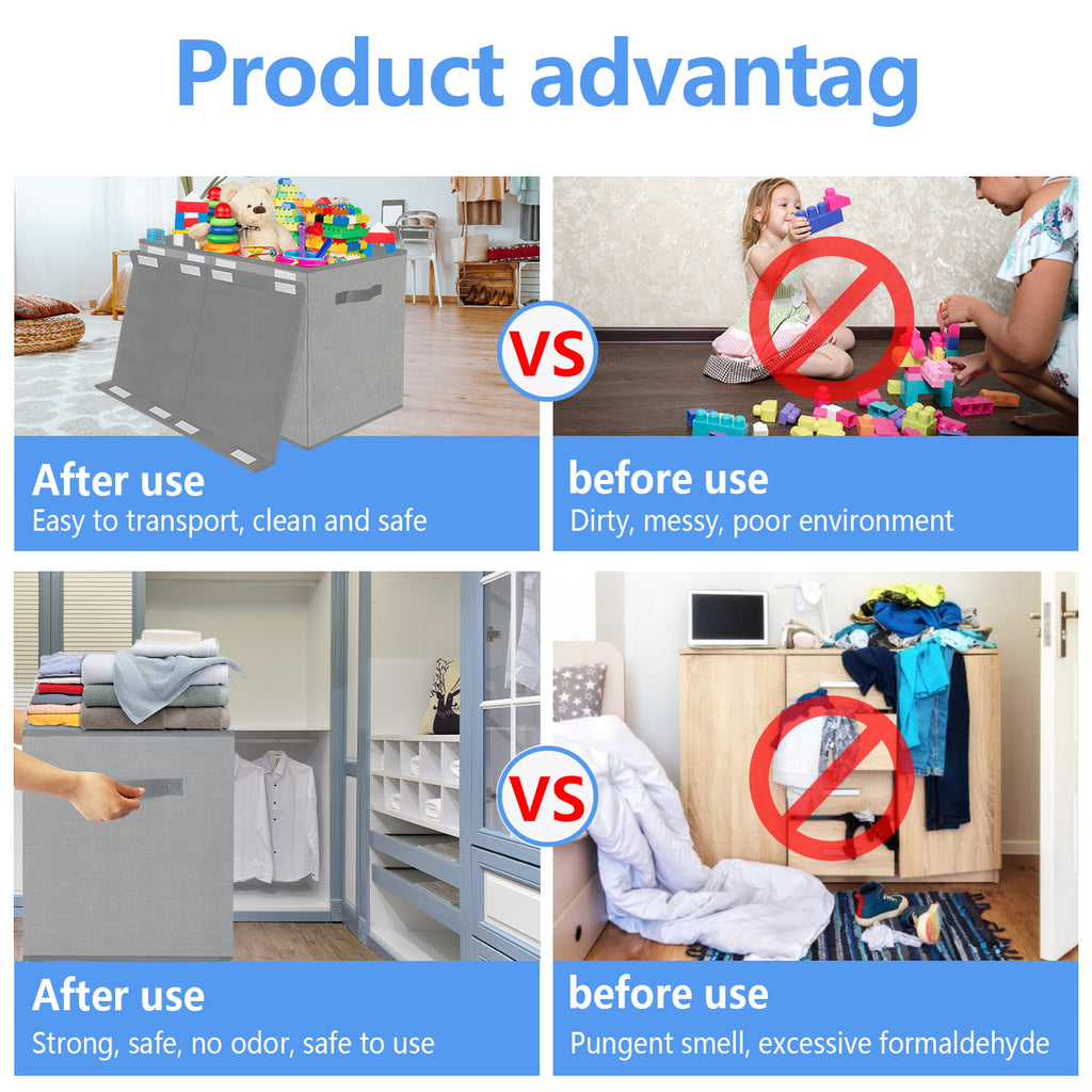 Play happily, keep away from the messy toys everywhere in your home! Store your child’s play necessities in the large toy box. The thing of child raise adornment is easy desultorily, already textbook has a toy again, storage very not easy.Now we have a fantastic toy storage box that will solve all of these problems for you! Let the messy toys and household items on the sofa, under the table, bed, living room, and bedroom all in the toy chest, then you will get a harmonious, neat, and comfortable family. But this toy storage for kids not only can be placed in the children's room to organize stuffed toys, dolls, but also can put it in many places, for example, it can be placed in the bedroom to store quilt blankets and pillows, and placed in the laundry room to store cleaning supplies, detergent, cloths, living room linen and towels, used to place magazines and many daily necessities that are temporarily unused, schools can also use it to organize textbooks, learning utensils, besides, you can store pantry dry goods, the kids toy box also can play a role as a storage basket for groceries in the car...
