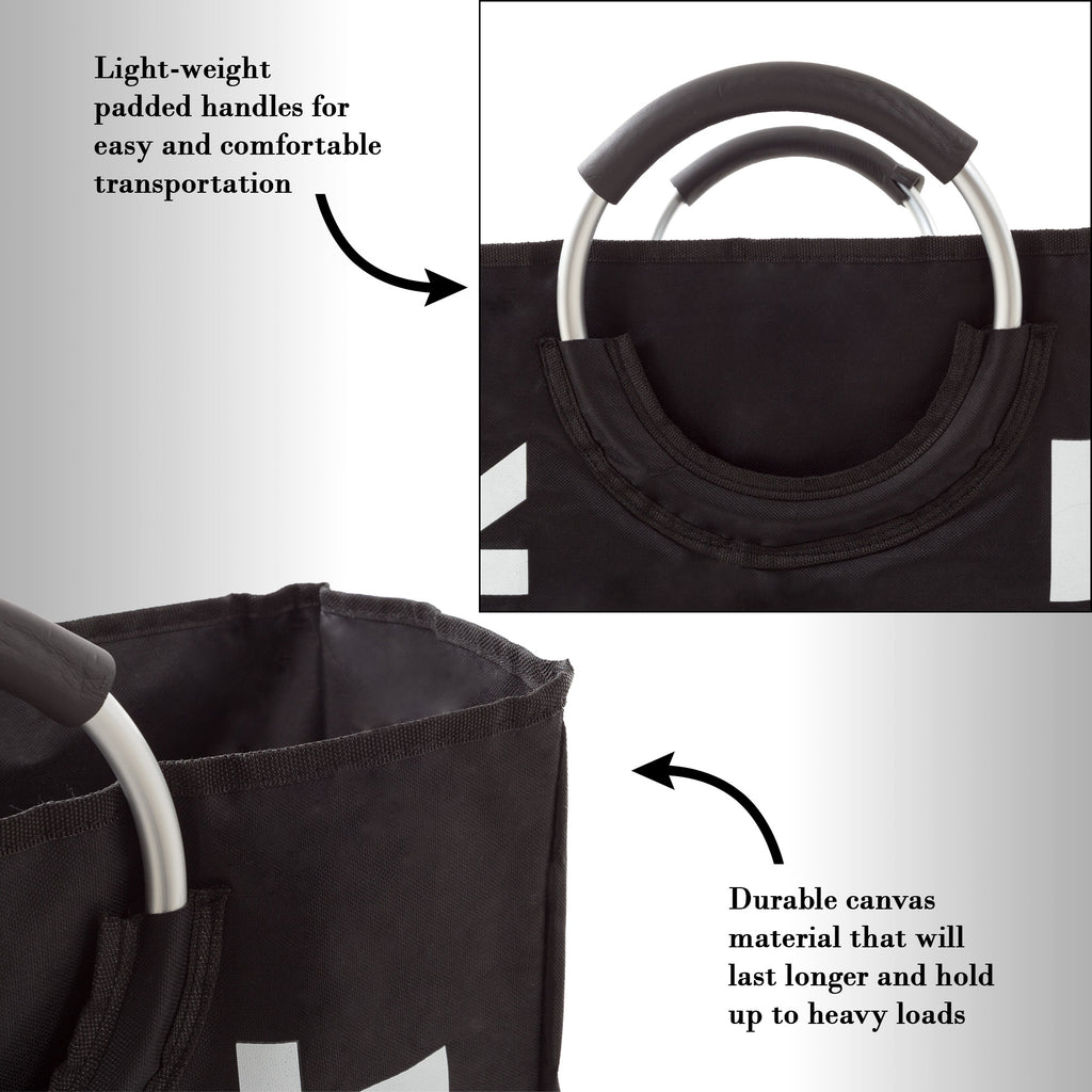 - COLLAPSIBLE AND SPACE SAVING - The soft, yet durable fabric is foldable and can be stored conveniently when not in use. With this convenient space-saving design, this Lavish Home dual laundry bin is perfect for frequent use in your bedroom, laundry room, or bathroom.