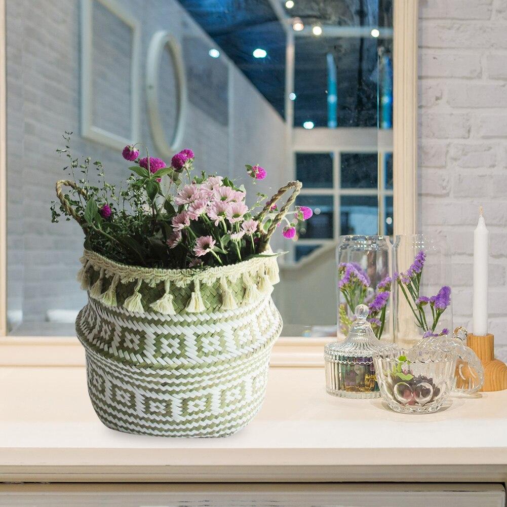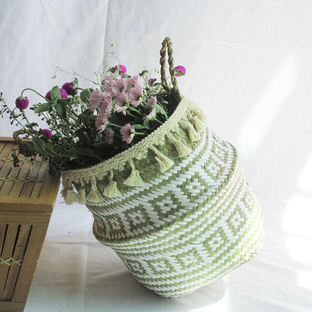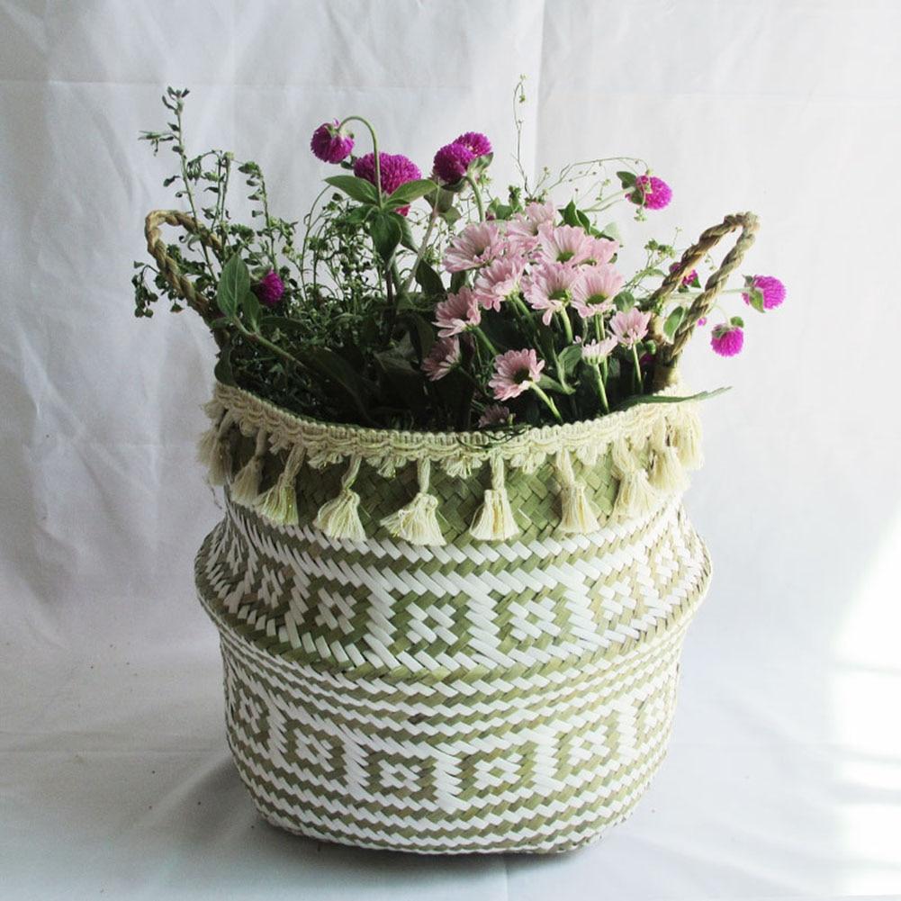 1. Creative foldable flower basket, hand-woven with natural straw rope.
