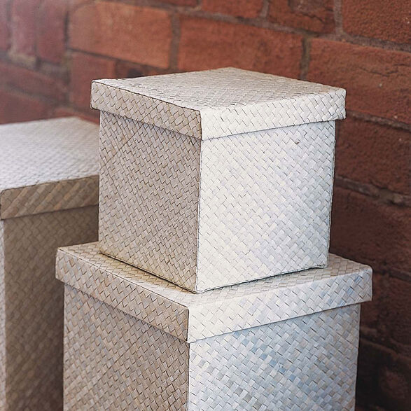 This gorgeous box has a sturdy card base with a woven natural coloured pandanus grass covering.