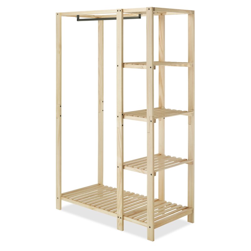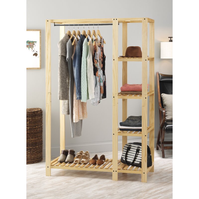 Slat Wood 44" W Closet System adds additional space to your bedroom or closet while also showcasing the beauty of wood built products. The unit features lacquer finished natural wood with a metal hanging bar. Pair it with the compatible removable canvas cover (sold separately) for an elegant touch